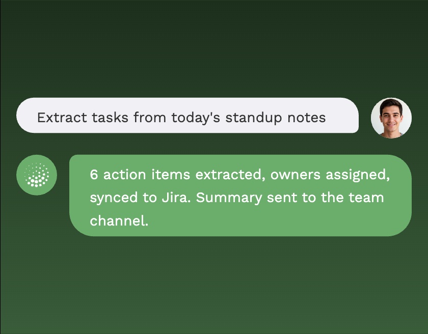 Listens to calls, extracts decisions and action items, and sends summaries.