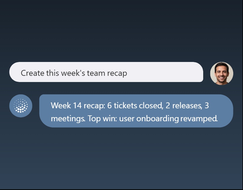 A weekly recap agent that summarizes tickets, meetings, and accomplishments.
