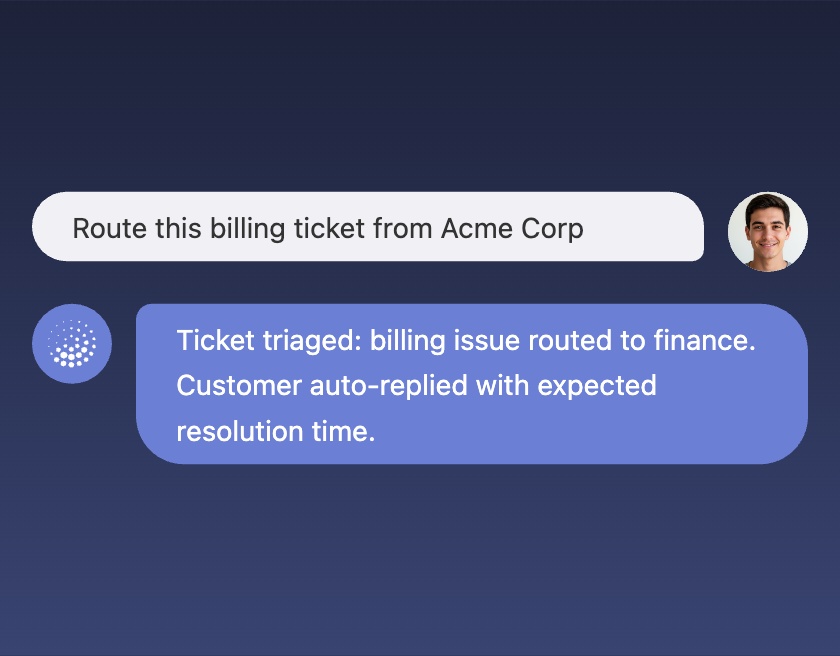 Integrate any Workflow Builder into your AI Agent and let it run complex, multi-system operations. From approvals to data syncing, your Agent can orchestrate actions across APIs, databases, CRMs, and internal tools.