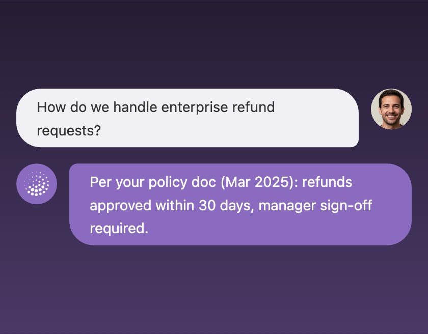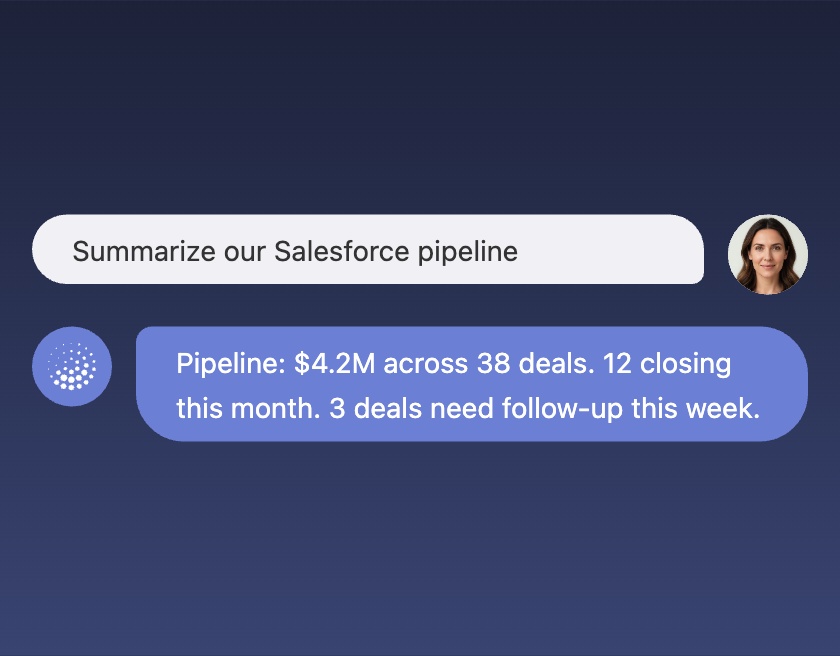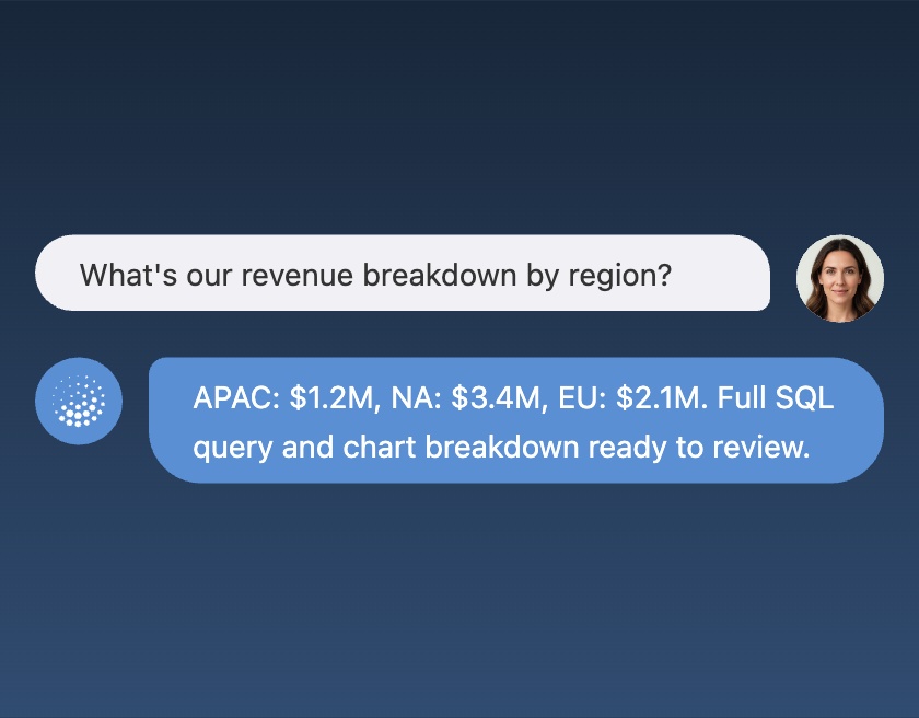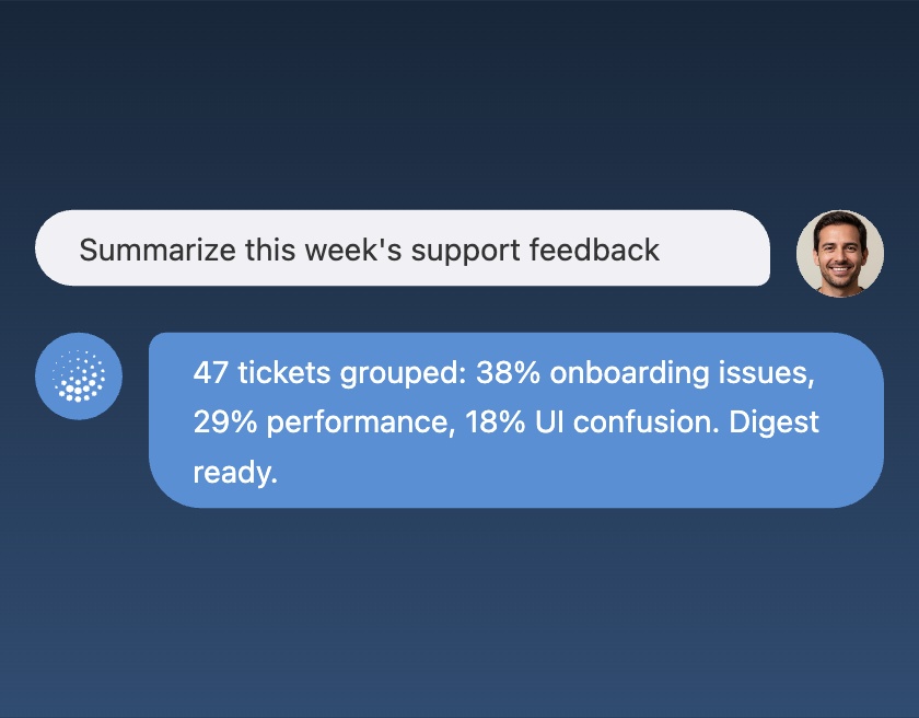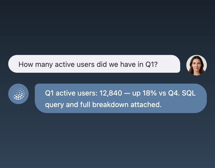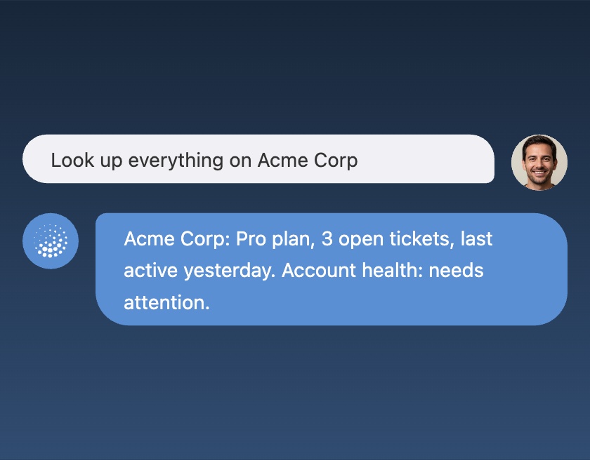AI Agent reads your databases, APIs, and CRMs to generate context-aware agents that answer questions and trigger actions — directly in your product interface.