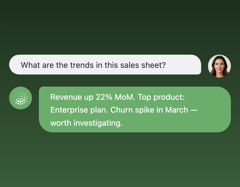 AI Agents don’t just give answers — they show results. Instantly visualize data in tables, charts, and reports directly inside your app.