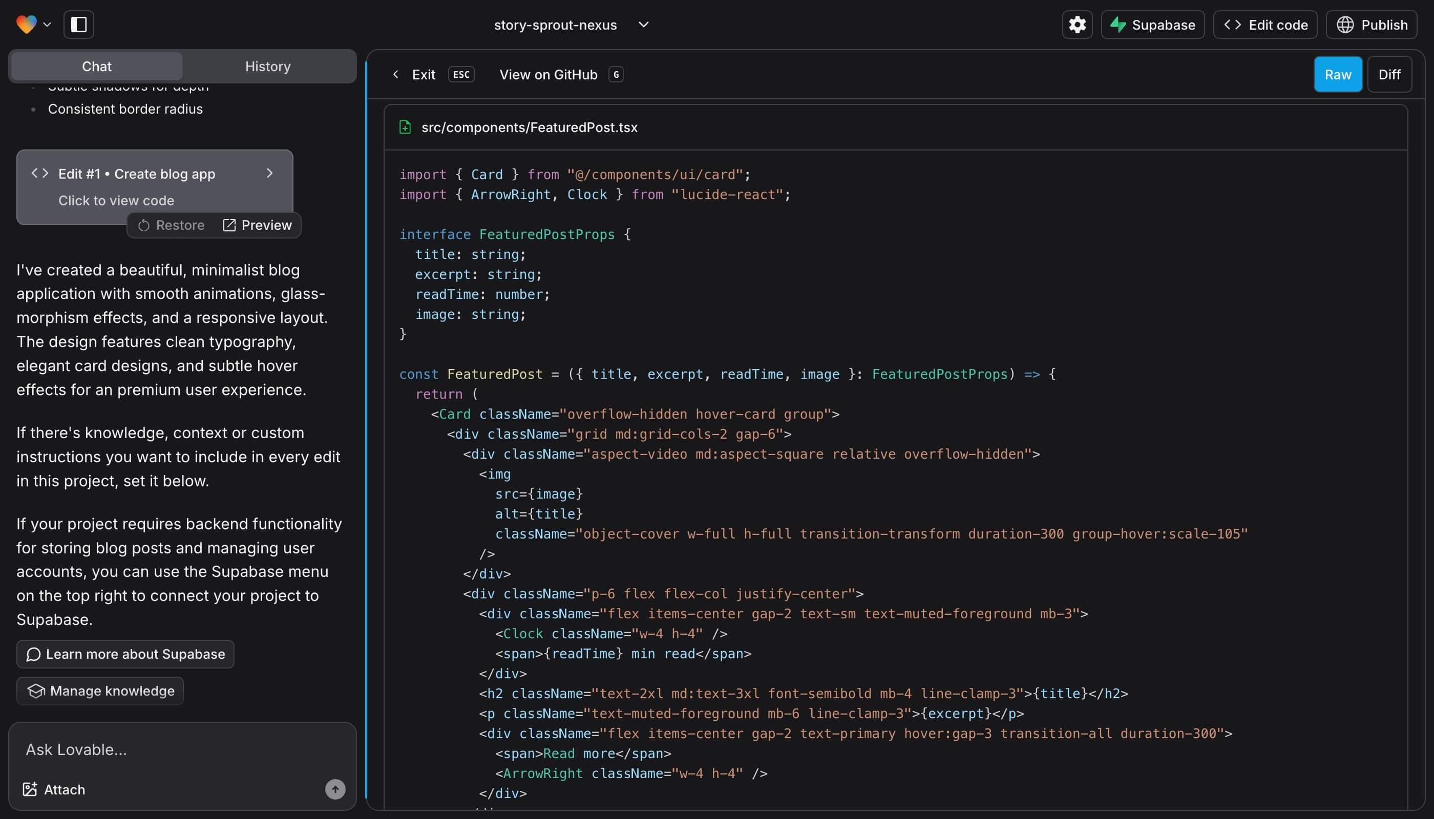 With Lovable, you still need a developer mindset. AI can generate the first React + Supabase app, but once you want to change data models, fix bugs, or add non-trivial logic, someone has to be comfortable reading and editing code in GitHub.